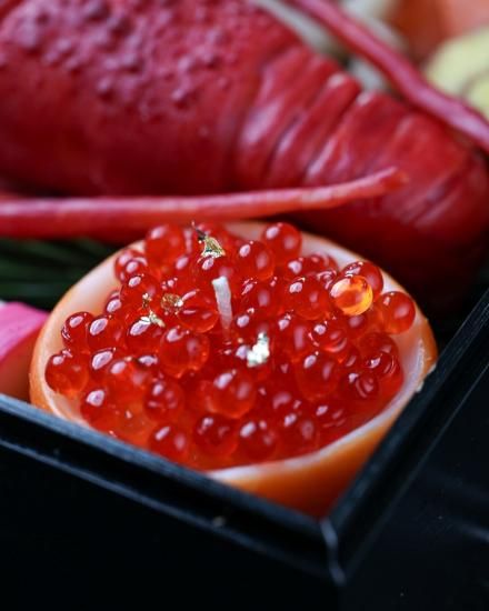 伊勢海老の艶、いくらの透明感、黒豆のつや、ゆずの香りまで丁寧に再現した特別な作品です。
